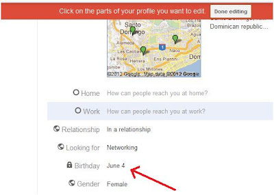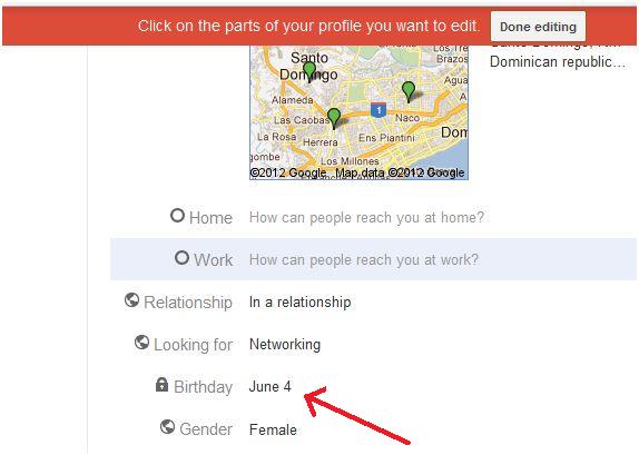 Si accedemos a nuestro perfil de Google+ o nuestra cuenta de Google, veremos que en el campo "Birthday" tenemos configurada nuestra fecha de cumpleaños. Si al acceder a su perfil notan que no, pues agréguenla.